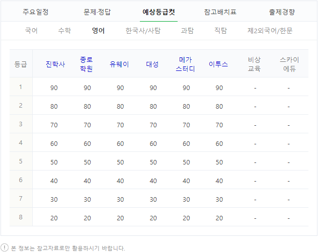 수능 예상 등급컷 1등급 국어 87 수학 가 92 수학 나 88 대학저널
