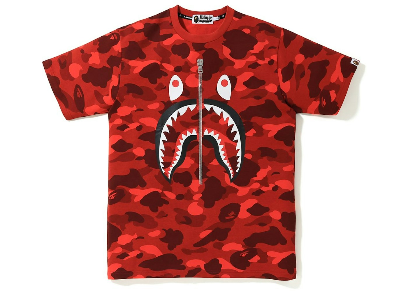 BAPE Color Camo Shark LS Tee BlackRed. Bape Camo Baseball Ribbon Hoodie. The BAPE College Tee Black and the BAPE Family Bag ABC Camo T-Shirt White are two classic but popular colorways.